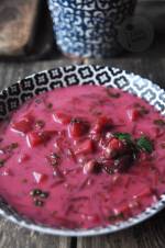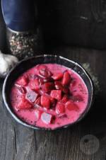 Zupa z burakami i czerwoną fasolą 132Taki trochę oszukany barszcz ukraiński. W smaku ta zupa naprawdę nieco go przypomina. Jeżeli jesteście posiadaczami zakwasu z buraków, zróbcie ją koniecznie. Składniki: 1 l