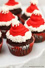 Mikołajkowe babeczki (bez glutenu i jajek) 348Świąteczne babeczki z zabawną dekoracją w kształcie czapeczki Świętego Mikołaja. Mocno korzenne, piernikowe, wilgotne, z nutką bananów. Bez glutenu i jajek. Proste do zrobienia i bardzo