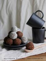 Czekoladowe praliny z prażonego słonecznika, daktyli i mąki kokosowej - co wiesz o mące kokosowej? 190miseczki przełożyć słonecznik z daktylami, dodać ostrą paprykę, wlać śmietankę z rozpuszczoną czekoladą i całość wymieszać. Na końcu dodać mąkę kokosową w takiej ilości, aby powstała w miarę zbita masa. Formować niewielkie kuleczki (moje mają mniej więcej wielkość żółtka kurzego jajka), które można opcjonalnie obtaczać w mące kokosowej, cukrze pudrze lub kakao. Wielbiciele maksymalnie czekoladowych smaków mogą te praliny oblać(...)się do spożycia bez obróbki termicznej. Można ją traktować tak, jak inne mąki powstałe po zmieleniu dowolnych orzechów czy też nasion. Zatem to idealny dodatek do deserów, spodów do ciast bez pieczenia, czy też zagęszczania kremów. Nie potrzeba jej dużo, gdyż świetnie pochłania wilgoć. To nie znaczy jednak, że nie można jej gotować, piec czy smażyć. Trzeba ją jednak wyczuć