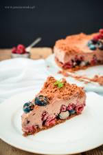 Sernik czekoladowo-limonkowy z mascarpone bez pieczenia 293Pamiętacie orzeźwiający sernik cytrynowo-borówkowy ? Tak nam smakował, że zrobiłam jego odpowiednik z ciemną czekoladą, limonką i malinami. Mi zdecydowanie bardziej do gustu przypadła biała wersja
