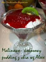 Malinowo – kokosowy pudding z chia wg Aleex 206incydentalne, ale… Szkoda, że koleżanka mojej siostry nie doczytała mojego komentarza do zdjęcia, w którym dodałam, że wszystko musiałam wyrzucić (łącznie z Mańkiem, który wyleciał z kuchni) i piec ciasto od nowa. Ale jakoś tak jest, że ludzie, którzy nas nie znają i którym nie daliśmy do tego prawa, mają najwięcej do powiedzenia na nasz temat i pozwalają sobie(...)minut. 4. Do mleka kokosowego dodać 3 łyżki nasion chia i wymieszać. Odstawić na 15 - 20 minut. 5. Po tym czasie wyraźnie będzie widoczny początek procesu 'żelowania'. Masa zacznie gęstnieć. 6. Jeszcze raz zamieszać, dosłodzić do smaku masę kokosową i malinową. 7. Przykryć folią spożywczą i włożyć do lodówki na kilka lub na całą noc. 8. Po tym czasie masa