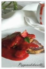 Truskawki ach truskawi 298truskawi. Wsrod owocow to wlasnie one nie maja sobie rownych. Nic wiec dziwnego, ze nie potrafie przejsc obojetanie obok straganow z tym czerwonym przysmakiem. Wczoraj zakupiliśmy ich cala masę i pomyślałam sobie, ze chętnie upiekę tartę taka, która jadalismy gdy jeszcze mieszkalismy we Francji. W moim ulubionym francuskojezycznym pismie "Maxi Cuisine" znalazlam przepis z cudownym zdjeciem, ktore kusi za kazdym(...)smazymy je na margarynie lub oliwie z obu stron na zloty kolor. Racuszki posypujemy cukrem pudrem i polewamy sosem truskawkowym. Uwagi: Zamiast zwyklego cukru dalam brazowy. Poniewaz wedlug mnie ciasto bylo zbyt luzne dalam dodatkowo 2 czubate lyzki maki. Zrodlo - ksiazka "Ziemniaki" wydawnictwa Swiat Ksiazki Sos truskawkowy skladniki: 1,5 szklanki truskawek 1 lyzka brazowego cukru 0,5 lyzeczki cynamonu
