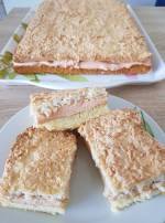 Lekcje w kuchnipewno osoby, które lubią wiórki kokosowe i ananasa będą w siódmym niebie :) SKŁADNIKI: BISZKOPT: 4 jajka szklanka cukru szklanka mąki pszennej łyżeczka proszku do pieczenia i octu CIASTO KOKOSOWE: 4 białka 30 dag drobnych wiórek kokosowych 3/4 szklanki cukru KREM: puszka ananasa w syropie 4 łyżki cukru 2 szklanki mleka 2 budynie śmietankowe kostka masła 4 żółtka ORAZ: opakowanie(...)Wlewamy na blachę wyłożoną papierem do pieczenia (spód) o wymiarach 25/40 cm. Pieczemy ok. 25 minut w temp. 150 st. C termoobieg lub 170 st. C ustawienie góra dół. CIASTO KOKOSOWE: Białka ubijamy, partiami dosypujemy cukier. Gdy piana jest gładka wsypujemy wiórki i za pomocą łyżki delikatnie mieszamy. Wlewamy do blachy o takich samych wymiarach co na biszkopt. Pieczemy