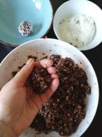 czarrna od kuchniKulki kokosowe to szybka słodka przekąska bez pieczenia. Z tego względu jest również idealnym łakociem, którego przygotować można z dziećmi. Kilka składników i deser gotowy. Moje