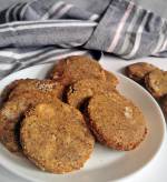 Di gotujepieczenia (płaska) 50g masła 50g smalcu 75g cukru 1 jajko 2 łyżki mleka Dodatkowo: 50g czekolady Ponadto: olej do ciastek smażonych (użyłam kokosowego) Czekoladę zetrzeć na tarce o średnich oczkach. Wszystkie składniki zagnieść i połączyć z czekoladą. Ciasto rozwałkować na grubość 5 mm i wykrawać z niego kółka (u mnie o średnicy 6 cm). Wersja smażona: Ciasteczka smażyć na patelni
