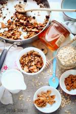 Szybka granola z patelni 156Szybka granola z patelni to moja dzisiejsza inspiracja dla Was. Przygotujcie ją sobie jutro na śniadanie, gwarantuję że jest pyszna! Potrzebujecie patelni, płatków owsianych, miodu, oleju
