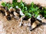 Via Gustoprowizorycznych barów mieszczących się w przyczepach kempingowych "Niewiadów" N126 - takich PRL-owskich food tracków. Grzyby i cebula podane w sposób, który zachwyca do dziś. Podobnie jak w przypadku polskiej pizzy z tego okresu, grzyby podsmażane są z cebulą tworząc podstawę farszu, z tym, że pizza jest podawana na placku drożdżowym, a tu kładziemy wszystko na przekrojoną wzdłuż bagietkę, na której