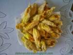 Kwiaty cukinii, dyni nadziewane twarogiem, smażone w cieście - fiori di zucca ripieni di ricotta 394Faszerowane kwiaty Kwiaty cukinii lub dyni, nadziewane twarogiem i wędzonym serem , smażone w cieście ( fiori di zucchini o zucca ripieni e fritti ) SKLADNIKI15 kwiatów cukinii lub dyni150 g twarogu (najlepiej typu ricotta )70 g wędzonego sera ( provola affumicata )szczypta gałki muszkatalowej1 jajkopieprzolej do smażenia(...)wystajacymi listkami i opłukać pod bieżącą wodą. Osuszyć bardzo delikatnie i ułożyć na talerzu.W jednym pojemniku wymieszać dokładnie twaróg, wędzony ser, jajko, sól, pieprz i szczyptę gałki muszkatalowej, Nadziewac delikatnie kwiaty cukinii łyżeczką.Teraz kolej na ciasto Mąkę wymieszać z solą, dodać wodę gazowaną . Dokładnie wymieszać. Powinno mieć konsystencję gęstej śmietany. Kwiaty maczać