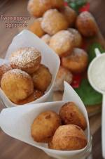Placuszki Twoja Puchatość 249jabłka starte na tarce o dużych oczkach Wykonanie: Wykonanie jest banalnie proste. Wszystko miksujemy: twaróg, 3 całe jajka, cukier, miód, proszek, aromat, mąkę do uzyskania jednolitej konsystencji, na koniec dodajemy banany. W międzyczasie ubijamy białka z odrobiną soli. Po zmiksowaniu ciasta, wyłączamy mikser i łączymy z ubitą pianą, delikatnie proszę Placuszki smażymy na bardzo małej ilości tłuszczu, z obu stron