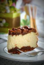 Sernik marmurkowy z czekoladą 396zróbcie i przekonajcie się, że zasługuje na miano jednego z najlepszych ciast serowych! (Forma o wymiarach około 15 x 27 cm) Masa serowa: 100g czekolady (preferowana gorzka, ale może być dowolna) (*) 50g masła/margaryny 100g cukru 2 łyżki cukru waniliowego 1 szczypta soli 500g mielonego twarogu (użyłam z wiaderka) 700 ml śmietany 12-18% 2 jajka (duże(...)rozgrzanego piekarnika i piec (**) (najlepiej z parą wodną) około 80-90 minut w 180 stopniach. (Na spodzie piekarnika ustawić blachę/naczynie żaroodporne z wodą. Dzięki temu ciasto będzie równe, nie opadnie i nie popęka.) Upieczone ciasto ostudzić przy lekko uchylonych drzwiczkach piekarnika i następnie wstawić do lodówki - najlepiej na całą noc. Przed podaniem oprószyć kakao