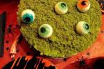 Straszne ciasto na Halloween 404mrożonego szpinaku (drobny, nie w liściach) niecała szklanka cukru 2 jajka pół szklanki oleju szklanka mąki krupczatki czubata łyżeczka proszku do pieczenia masa twarogowa: 50 dag mielonego twarogu 500 ml śmietany kremówki śnieżka 2 łyżki cukru pudru 2 galaretki o smaku cytrynowym dodatkowo: żelki w kształcie gałek ocznych do ozdoby Sposób przygotowania: Mleko podgrzewamy z połamana czekoladę(...)Mieszamy sypkie składniki: mąkę, kakao, proszek do pieczenia, sodę oczyszczoną. Jajko ubijamy mikserem, pod koniec dodając cukier. Wlewamy śmietanę, olej. Dalej miksujemy. Dodajemy czekoladę z mlekiem i sypkie składniki. Ciasto wylewamy na blaszkę wyłożoną papierem do pieczenia (śr. 26 cm). Pieczemy przez ok. 30 minut w temperaturze 180 stopni C. Szpinak rozmrażamy na patelni do czasu aż straci całkowicie wodę