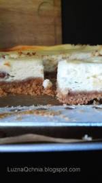 Serniczek z likierem Baileys 270Składniki: 1op herbatników maślanych 0,5 kubka mielonych orzechów włoskich 0,25 kostki masła 0,5 kg mielonego twarogu 1 op serka mascarpone (200-250g