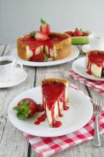 Sernik panna cotta z truskawkami 568ciasta wylepić dno i boki formy (lub rozwałkować pomiędzy dwoma arkuszami pergaminu i przenieść do formy). Gęsto nakłuć widelcem. Ponownie schłodzić 30 minut. Piekarnik rozgrzać do 180°C. Kruche ciasto podpiec przez ok. 10 minut. Masa serowa 200 g (mały kubeczek) śmietanki 30% 1 laska wanilii 5 jajek (osobno żółtka i białka) 150 g drobnego cukru 500 g śmietankowego(...)cukrem na jasną puszystą masę. Stopniowo dodawać na przemian twaróg i mascarpone,aż do wyczerpania. Dodać sok i skórkę cytryny, obie mąki, wymieszać. Białka ubić ze szczyptą soli na sztywno. Delikatnie wymieszać z masą serową. Konfiturę truskawkową wymieszać ze 80 g musu truskawkowego. Mieszankę rozsmarować na podpieczonym cieście. Na masę truskawkową nałożyć masę serową (najpierw po łyżce, aż przykryje truskawki