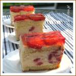 Waniliowy sernik na zimno 381Kasia2/3 szklanki cukrucukier waniliowy1 kg zmielonego twarogu półtłustego4 żółtka1/2 szklanki mlekabudyń waniliowy 6 łyżeczek żelatyny600 g truskawekszklanka naparu z czarnej herbatygalaretka truskawkowa Najpierw przygotować biszkopt. Białka oddzielić od żółtek. Ubić na sztywną pianę. Pod koniec ubijania stopniowo dodawać cukier. Następnie po kolei dodawać żółtka, nadal ubijając. Mąki wymieszać, przesiać i delikatnie wmieszać do ciasta na bardzo wolnych obrotach miksera.Form
