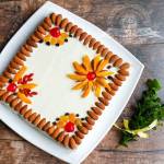 Ptasi domek - sernik na zimno bez pieczenia 215rurki waflowe Masa: 1 szklanka śmietany 30% 50 dag twarogu 0,5 szklanki cukru Gorzka czekolada- 1 tabliczka Cukier wanilinowy Galaretka o smaku owoców 2 łyżki żelatyny Wykonanie: Twaróg zmielić, wymieszać z białym cukrem, cukrem wanilinowym, ubitą kremówką, sokiem z cytryny i rozpuszczoną żelatyną. Następnie podzielić na dwie części. Do jednej części dodać kakao, a do drugiej aromat (kilka(...)masę jasną. Na środek położyć dwie rurki i przy pomocy foli zginać delikatnie boczne ciastka do góry, tak aby obie masy złączyć w trójkąt tworząc domek. Tak przygotowane ciasto, schłodzić w lodówce przez parę godzin. Kroić ostrym nożem namoczonym w gorącej wodzie