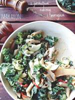 Szybki makaron z jarmużem, cukinią i twarogiem 258chociaż osobiście uwielbiam właśnie jej SMAK i chętnie dodaję ją do wszelkich dań. W przypadku poniższego makaronu idealnie wpasowała się w połączeniu z jarmużem, papryczką i moim ulubionym, wszędobylskim twarogiem. Na pewno jeszcze powtórzę to połączenie. Jarmuż - pochodzi z zielonej rodziny kapustowatych, podobnie jak brokuły, rukiew czy brukselka. I podobnie jak wszystkie warzywa kapustowate posiada on niezwykłe właściwości antynowotworowe. Skąd(...)Można zrobić z niej np. pyszne placuszki, makaron, a nawet ciasta (na słodko!)... Co ciekawe, można ją jadać także na surowo. Ja nie praktykuję, bo nie lubię, ale podobno można i tak zdrowiej. Składniki (na 2-3 porcje) : 150 g pełnoziarnistego makaronu penne 100 g twarogu (w domu miałam chudy) 100 g jogurtu naturalnego 1/2 szklanki mleka