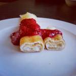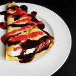 Naleśniki z twarożkiem kokosowym i sosem malinowym 226malinowy z nutką wanilii to idealna propozycja na szybki obiad lub drugie śniadanie :) Ciasto : 250 ml wody 250 ml mleka 2 jajka 1 łyżka oleju pół łyżeczki soli 200 g mąki pszennej Wszystkie składniki dokładnie zmiksować. Smażyć na patelni z małą ilością tłuszczu. Twarożek : 4 łyżki twarogu 2 łyżki jogurtu naturalnego 1 łyżka wiórków kokosowych Składniki połączyć za pomocą łyżki