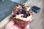 Babeczki z twarożkiem i jagodami leśnymi 156Domowe babeczki kakaowe z dodatkiem tartej gorzkiej czekolady, zrównoważone masą serową i owocami leśnymi. Posiekana gorzka czekolada przyjemnie rozpływa się w babeczkach po upieczeniu, jest delikatnie