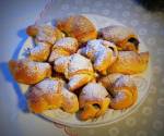 Rogaliki i słoneczka drożdżowe 341takie chrupiące jak ciasto francuskie. Jednym słowem pyszne. Moje rogaliki to raczej rogale- normalnie mi się zapomniało, że one rosną przecież w piekarniku i podwajają swoją obiętość. Nie zapominajcie o tym jak będziecie je kłaść na blaszce, trzeba zachować odstęp.Moje rogale przypominają raczej włoskie cornetti serwowane na śniadanie na Sycylii. Ręcznie robione, nocą. Nadziewane rocottą- twarogiem owczym lub nutellą(...)miski wsypujemy mąkę, dodajemy śmietanę i żółtka, cukier waniliowy i miękkie masło oraz margarynę. Ja swoje po prostu rostopilam i wystudziłam, dodajemy rozczyn drożdżowy i zarabiamy gładkie ciasto tak długo, aż wszystkie składniki się połączą. Ja swoje ciasto wyrobiłam hakiem do ciasta w CC Major Kenwood. Ciasto przykrywamy i chowamy na noc do lodówki, lub na minimum 1 godzinę