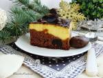 Sernik na czekoladowym spodzie. 281manny 3 łyżki budyniu Polewa: Przepis -----> TU Jeśli mamy twaróg z kostki to trzeba go zmielić, albo dodać do niego wszystkie mokre składniki i dokładnie zmiksować. Nie ma żadnego ubijania piany, ucierania żółtek, tylko dokładnie mieszamy i to wystarczy, można się brać za ciasto. Do wysokiego naczynia dodajemy wszystkie mokre składniki i cukier. Mieszamy chwilę aby się(...)mnie. Gdy zaś podzielimy sobie blachę na dwie połówki ( tak na oko) i na środek każdej damy po połowie białej masy. Wówczas ciasto pójdzie na boki i na środek. Możemy też nakładać łyżką mniejsze i większe porcje twarogu, będzie wyglądać jeszcze inaczej. A więc widzicie, wszystko zależy od naszej wyobraźni, ale jedno jest pewne, ciasto jest bardzo efektowne