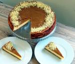 Sernik z nutą orzechową 268Sernik z polewą kajmakową i masłem orzechowym. Masę serową stanowi mieszanka twarogu i mascarpone, której ostatnio coraz częściej używam do pieczenia serników (ciasto jest wtedy bardziej