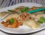Pierogi z kaszą gryczaną, grzybami i boczkiem 325wyczuć ciasto najprostszą na świecie metodą prób i błędów. Od tego czasu dość często robię i makaron, i pierogi. Każdemu, kto uważa, że nie potrafi polecam poćwiczyć - okaże się, że strach ma wielkie oczy :) a pierogi i makaron to coś wspaniałego i prostego :)Do faszerowania pierogów można wykorzystać praktycznie wszystko. Od świeżych owoców przez twarogi, ziemniaki i kasze(...)miękkości. Połączyć z wcześniej ugotowaną kaszą - przyprawić do smaku solą i świeżo zmielonym pieprzem.Ciasto na pierogi:około pół kg mąki pszennej,mąka do podsypywania ciasta podczas rozwałkowywania,1 łyżeczka soli,1 szklanka ciepłej wody.Do miski wlać wodę, wsypać sól i mąkę. Wszystko dokładnie połączyć. Można robić to od razu na stolnicy, ja jednak