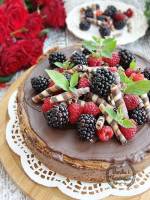 Sernik "leśne runo" 320Mega czekoladowy sernik na kruchym spodzie, z dodatkiem skarbów lasu: jeżyn i malin, kwintesencja smaku, pachnący latem, rozkosznie rozpływający się w ustach, jeden z lepszych serników