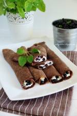 Naleśniki z jagodami 238wymieszać.Im dłużej ciasto odpoczywa, tym bardziej zgęstnieje i będzie potrzebować więcej wody. Konsystencja powinna być płynna, ale nie bardzo rzadka. Na rozgrzanej patelni rozprowadzić odrobinę oleju. Nalać porcję ciasta. Naleśniki smażyć z obu stron na średnim ogniu. Farsz 400 g białego sera 250 g mascarpone kilka łyżek mleka lub śmietany (opcjonalnie) 2-3 łyżki cukru waniliowego lub więcej(...)jagód Ser i mascarpone wymieszać z cukrem. Jeżeli masa będzie zbyt gęsta, dodać odrobinę mleka lub śmietany. Na każdy naleśnik nałożyć porcję sera, posypać jagodami i dowolnie złożyć. Smacznego! *Twaróg prosto z lodówki wydaje się zawsze mniej słodki, niż taki w temperaturze pokojowej