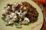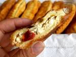 Czebureki z serem i suszonymi pomidorami. 263sera feta lub sałatkowego 150 g twarogu kilka suszonych pomidorów z oliwy 1 ząbek czosnku duża szczypta suszonych pomidorów z ziołami bazylia sól pieprz ziołowy staropolski olej do smażenia Mąkę wsypać do miski dodać sól utarty ser, jajka, sodę, olej i spirytus lub ocet. Zagnieść i dobrze wyrobić ciasto. Sery włożyć do miski dodać pokrojone pomidory z oliwy przyprawić