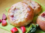 Drożdżówki z serem i rabarbarem 215ciasto. Pozostawiamy do wyrośnięcia na około 1h. 2. Wyrośnięte ciasto ponownie zagniatamy, dzielimy na 9 równych części. Formujemy okrągłe bułki, układamy w dużych odstępach na blaszce wyłożonej papierem do pieczenia. Ponownie pozostawiamy do wyrośnięcia na około 1h. 2. Rabarbar kroimy na kawałki, posypujemy cukrem i gotujemy do wyparowania wody. Studzimy. Twaróg mieszamy z cukrem. Wszystkie składniki na kruszonkę zagniatamy