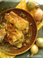 Naleśniki ruskie 467złoto. Gdy ziemniaki trochę przestygną mieszamy je razem z twarogiem. Ja użyłam do tego celu tłuczka do ziemniaków - masa powinna się dobrze ze sobą połączyć. Następnie dodajemy podsmażoną cebulkę i doprawiamy solą i pieprzem. Teraz przygotowujemy naleśniki. Jajko mieszamy z wodą i mlekiem a następnie dodajemy mąkę oraz szczyptę soli. Ciasto powinno mieć kremowo-lejącą się konsystencję. Jeśli zajdzie taka