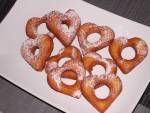 Słodkie środy - Serduszkowe oponki dla Dziadzia 223opakowanie cukru waniliowego kilka kropel aromatu waniliowego 250 g twarogu 7 łyżek oleju 7 łyżek mleka 2 łyżki spirytusu Smalec do smażenia cukier puder do posypania PRZYGOTOWANIE: Mąkę przesiewamy do miski, dodajemy proszek do pieczenia, cukier, rozdrobniony ser, cukier waniliowy, aromat oraz olej i mleko - z produktów należy zagnieść jednolite ciasto. Następnie ciasto wałkujemy dość cienko i wykrwawmy serduszka