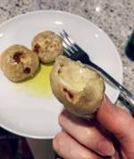 Bułeczki z patelni nadziewane camembertem 330bułeczki w wersji z mąką orkiszową i twarogiem kozim TUTAJ . Dzisiaj jednak prezentuję je wam w nieco innej odsłonie. Zachęcam do spróbowania ! Składniki: 1 szklanka mąki pszennej około 100 ml gorącej wody 1/2 łyżeczki sody oczyszczonej 1/2 łyżeczki soli około 50g camemberta Przygotowanie: Umieszczamy wszystkie składniki w misce i szybko zagniatamy. Ciasto dzielimy na pięć kawałków, po czym z każdego