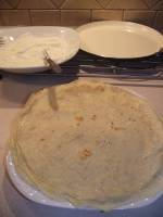 Naleśniki- przepis podstawowy. 395niewielką porcję ciasta, pamiętając o tym, że mają być one cieniutkie. Gdy naleśnik się już z wierzchu zetnie, a od spodu lekko zarumieni, przewracamy na drugą stronę, a po chwili zdejmujemy z patelni. Ważne jest również, by naleśników nadmiernie nie wysmażyć, bo w tedy staną się bardziej chrupiące, zresztą to też jest rzecz gustu. Smarujemy np. twarogiem wymieszanym z cukrem