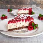 Sernik śmietankowy z polewą jogurtową i malinami 424Delikatny, kremowy sernik na kruchym czekoladowym spodzie, zwieńczony polewą jogurtową i malinami. Smakuje obłędnie! Uwielbiam serniki, zarówno piec jak i jeść. Moje ulubione to te kremowe