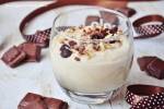 Deser chałwowy /krem / 330staram się aby desery były różnorodne, a co z tym idzie mniej lub bardziej kaloryczne. Zdarza się czasem nachodzi mnie ochota na coś słodkiego, a w domu brakuje jakiegoś ciasta, ciastek lub zwyczajnie nie ma się na nie ochoty przygotowuję w takiej sytuacji na przykład jakiś kremowy deser z produktów, które mam pod ręką. KREM CHAŁWOWY Składniki: (na 2 porcje(...)łyżeczka mąki ziemniaczanej rodzynki do posypania (opcjonalnie) Przygotowanie: Z białka ubijamy sztywną pianę. Żółtko ucieramy z cukrem i cukrem waniliowym. Do utartego żółtka dodajemy zmielony twaróg, miękkie masło oraz mąkę i pokruszona chałwę. Wszystko wstawiamy do kąpieli wodnej i podgrzewamy aż masa uzyska temperaturę około 75°C, następnie studzimy i delikatnie mieszamy z pianą