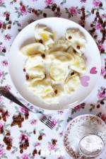 Pierogi z serem i rodzynkami 394Niedawno na blogu pojawił się przepis na pierogi z bryndzą i kurkami , a dziś przenosimy się w czasy dzieciństwa, gdzie na stole królowały pierogi z serem