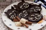 Kocie pierożki z serem na Dzień Kota 244chudego twarogu cukier lub ksylitol (do smaku) Mąkę zmieszać z kakao, dodać oliwę z oliwek i gorącą wodę. Wymieszać wszystkie składniki. Zagnieść gładkie ciasto (najlepiej mikserem) i odstawić na około 15 minut. Twaróg umieścić w misce, dodać cukier/ksylitol i rozgnieść widelcem. Ciasto cienko rozwałkować, wycinać porcje ciasta przy pomocy foremki w kształcie kotka. Na kawałkach ciasta układać po około łyżeczce