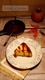 Sernik dyniowy z karmelem 342Oto idealna propozycja na jesienny sernik. Został upieczony z dodatkiem pure z pieczonej dyni. Natomiast na jego spód posłużyły zmielone płatki owsiane. Moim zdanie sernik