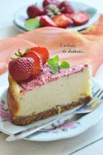 Sernik z rabarbarem i truskawkami 324Nie lubię, gdy sernik jest suchy i przypomina wiór;) Dlatego stale szukam doskonałego przepisu. Ten jest fantastyczny, nie jest suchy, ale też nie "pływający":) Pyszny kruchy