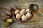 Pączki ziemniaczane 450luźne. Ciasto odstawić do wyrośnięcia. Rozgrzać tłuszcz do smażenia. Dużą łyżką zmoczoną w gorącej wody, nabierać ciasto, formować kulki (ja nabieram jedną łyżką ciasto, a drugą zdejmuje z niej ciasto prosto do tłuszczu) i smażyć w głębokim tłuszczu do zezłocenia. Wyjmować łyżką cedzakową, układać na ręczniku papierowym. W misce wymieszać cukier puder z cynamonem, oprószać nim pączki. Jak wspomniałam pączki(...)ziemniaka na potrzeby prac badawczych m.in. w badaniach genetycznych, biochemicznych i fizjologicznych. Podczas warsztatów przygotowaliśmy: ziemniaki z ogniska z pomoćką, brosaniki z cebulką, makowe kluski, kugiel warmiński, sasznie z twarogiem, pączki ziemniaczane, Wieczór umilały nam... ; * - B - ogólnoużytkowy - średnio twardy, nierozsypujące się, doskonałe do duszenia i gotowania, nadają się zarówno do gotowania jak i smażenia oraz na frytki - C - mączysty - zawiera