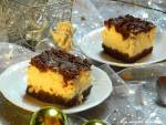 Sernik w kakaowym cieście 220masła 3 łyżki kakao 1/3 szklanki cukru 1 łyżka kwaśnej śmietany Masa serowa: 1000 g twarogu na sernik 1 szklanka cukru pudru 1 budyń waniliowy 4 jajka 200 g śmietany 18% aromat rumowy kandyzowana skórka pomarańczowa Z podanych składników zagnieść ciasto i podzielić je na dwie części. Jedną połowę zawinąć w folię spożywczą i włożyć do zamrażalnika. Drugą część ciasta