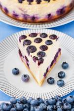 Sernik cytrynowy z borówkami 474cytrynymasa serowa500g twarogu trzykrotnie zmielonego lub gęstego z wiaderka150g serka mascarpone3 jajka100g cukru1 czubata łyżka (15g) mąki pszennej1 łyżeczka mąki ziemniaczanejskórka otarta z 1 cytrynysok wyciśnięty z 1 cytryny300g borówek Wykonanie:- cytrynę sparzyć, skórkę zetrzeć na drobnej tarce - mąkę i cukier przesiać, dodać zimne masło, składniki posiekać- dodać skórkę z cytryny i żółtko, zagnieść gładkie ciasto- ciasto schłodzić przez(...)stopni- tortownicę wyłożyć papierem do pieczenia, dno tortownicy wylepić równo schłodzonym ciastem- ciasto nakłuć gęsto widelcem, podpiec w piekarniku przez około 20 minut, ostudzić- temperaturę piekarnika obniżyć do 160 stopni, na dno wstawić szerokie naczynie z gorącą wodą - składniki na masę serową powinny mieć temperaturę pokojową- twaróg i serek mascarpone przełożyć do miski, dodać cukier i przesiane mąki, krótko zmiksować