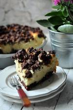 Sernik królewski 1913zdaje się, że przepis ma już ponad dwadzieścia lat. Czym prędzej nadrabiam zaległości i zapraszam na pyszny waniliowy sernik z rodzynkami, otulony kakaowym ciastem. W przepisie oryginalnym (click) użyto zwykłego, trzykrotnie mielonego twarogu, ja wykorzystałam twaróg sernikowy z wiaderka, który wg mnie świetnie się spisał. Sernik wyszedł taki jak lubię: konkretny i raczej ciężki, choć puszysty dzięki osobnemu ubiciu(...)proszkiem do pieczenia, cukrem pudrem, kakaem i siekamy z zimnym masłem. Dodajemy żółtka, śmietanę i szybko wyrabiamy. Ciasto dzielimy na dwie części (2/3- na spód i 1/3- na wierzch) owijamy folią spożywczą i do wkładamy do zamrażalnika na 1hMasa serowa:1 kg twarogu sernikowego z wiaderka5 jajek (białka i żółtka osobno)125 g miękkiego masła 1 szklanka cukru1 opakowanie