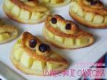 Uśmiechnięte ciasteczka 284uśmiechy, chyba głównie przez te końskie zęby :). Przygotowane są z ciasta twarogowego, dzięki czemu są mięciutki i wilgotne. Dzieci bardzo chętnie uczestniczą w pieczeniu takich ciastek, a jeszcze chętniej w ich jedzeniu :) Przepis znalazłam na tej stronie. Składniki na około 30 sztuk: 140 g mąka 190 g twarogu 100 g schłodzonego masła 4 łyżki cukru 1 łyżeczka proszku(...)cukru i cynamonu ewentualnie odrobina kakao (do zrobienia oczu) Mąkę przesiać z proszkiem do pieczenia do głębokiej miski i posiekać ze schłodzonym masłem. Dodać rozdrobniony widelcem twaróg, cukier, wanilię i sól. Wyrobić ciasto, podzielić je na 2 części i każdą część zawinąć w folię spożywczą. Odłożyć do lodówki na 30 minut. W tym czasie obrać jabłka, wykroić z nich gniazda