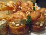 Ptysie z twarogiem i kurczakiem. 350naprawdę bardzo dobre. Jeśli macie zamiar przygotować imprezę i podać gościom coś oryginalnego i pysznego, to polecam ten przepis!!! Składniki na ptysie z twarogiem i kurczakiem około 20-24 sztuki CIASTO PARZONE: 125 ml wody 63 g margaryny 0,5 szklanki mąki pszennej szczypta soli 2 jajka NADZIENIE: 300 g kremowego twarożku 2 łyżki twarożku ze szczypiorkiem lub 1 łyżeczka(...)znów miksujemy. Powstałe ciasto przekładamy do rękawa cukierniczego. Blachę wykładamy papierem do pieczenia i wyciskamy nieduże ciasteczka. Wkładamy do piekarnika nagrzanego do 190 stopni C i pieczemy 15 minut. Po tym czasie zmniejszamy temperaturę do 150 stopni i pieczemy jeszcze 15 minut. Rumiane ciastka wyjmujemy z piekarnika, po przestudzeniu przecinamy na pół. Nadzienie. Twaróg mieszamy z majonezem