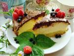 Sernik z czekoladowym musem i owocami-(dla gości) 265błędów wyszedł taki jaki powinien być. Z pełną satysfakcją postawiłabym go na stole -dla gości...:) Składniki Ciasto: 1,5 szklanki mąki 1/2 kostki margaryny 3 łyżki cukru 2 żółtka 1/2 łyżeczki proszku do pieczenia 1 łyżka śmietany 18% Masa: 1 kg twarogu 6 jajek 1 budyń duży śmietankowy 1/2 szklanki mleka 100 g masła 1 szklanka cukru 1 cukier waniliowy(...)starta czekolada do posypania Sposób przygotowania CIASTO: Mąkę wysypać na stolnicę przemieszać z proszkiem do pieczenia dodać resztę składników i szybko zagnieść kruche ciasto. Wylepić wyłożoną pergaminem tortownicę o średnicy 28 cm -samo dno. MASA: Twaróg zemleć wsypać cukry dodać jajka wlać budyń rozpuszczony w mleku, zmiksować wszystko razem na puszysto dodając w trakcie masło. Wylać masę serową na kruche