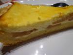 Sernik z jabłkami lub jabłecznik z sernikiem na kruchym spodzie 263tartę ( przypomnienie ) 150 gram masła/ margaryny 100 gram cukru 300 gram mąki 1 jajko Masa serowa: Ok. 500 gram twarogu ( mielonego do serników ) 2 jajka ½ szklanki cukru ¼ kostki masła 1 opak. Cukru wanilinowego 3 – 4 jabłka Wykonanie: Zagniatamy ciasto, schłodzonym ciastem wlepiamy formę ( okrągłą do tarty ). Ciasto nakłuwamy widelcem(...)zapiekamy w nagrzanym piekarniku do 180 o C przez 20 minut. Jabłka obieramy i kroimy na cienkie plasterki. Pasterkami wykładamy podpieczony spód ciasta. Jajka ucieramy z cukrem, cukrem wanilinowym i masłem. Na koniec dodajemy twaróg. Mieszamy. Masę twarogową wylewamy na ułożone jabłka. Pieczemy przez 40 - 45 minut w temp. 180 o C. SMACZNEGO
