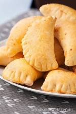 Pieczone pierogi drożdżowe z serem 352zamrozić. Z poniższej porcji składników przygotować można 20-25 sztuk . Pieczone pierogi drożdżowe z serem Składniki: CIASTO DROŻDŻOWE 320g mąki pszennej + do podsypywania 200ml wody (lub mleka) 10g drożdży świeżych 1 łyżka cukru 1/2 łyżeczki soli 1 łyżka oleju lub masła NADZIENIE 400g twarogu 50g domowego cukru waniliowego (lub zwykłego) 1-2 żółtka 1 jajko do posmarowania pierogów z wierzchu(...)przykryć ściereczką, odstawić w ciepłe miejsce do podwojenia objętości - przygotować nadzienie: twaróg rozdrobnić widelcem, dodać cukier oraz 1-2 żółtka (w zależności od wielkości jajek i rodzaju użytego twarogu) - wyrośnięte ciasto krótko wyrobić, dość cienko rozwałkować, w miarę potrzeby podsypując mąką, szklanką lub okrągłą foremką wykroić krążki - na każdy krążek nałożyć nadzienie, zlepić brzegi ciasta tak jak pierogi - odkładać