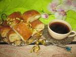Bułeczki z twarogiem 261drożdży 3 łyżki cukru 250 ml dobrze ciepłego (ale nie gorącego) mleka 350 g mąki tortowej Młynomag [ u mnie coś około 500 g] 1/2 łyżeczki soli 500 g gęstego twarogu 4 łyżki cukru 2 jajka 1 łyżka cukru wanilinowego żółtko roztrzepane z 1 łyżka mleka do posmarowania 2 00 g cukru pudru + około 2 łyżek wody na lukier(...)masło i wyrabiać ciasto , aż będzie gładkie i bez grudek. Ciasto przykryć ściereczką i odstawić w ciepłe miejsce do wyrośnięcia na około 1 godzinę. Twaróg rozgnieść widelcem razem z cukrem, jajkami i cukrem wanilinowym. Wyjąć ciasto,podsypać mąkę stolnicę i rozwałkować ciasto na duży prostokąt około 35 x 45 cm. [ ja wałkowałam od razu na papierze do pieczenia